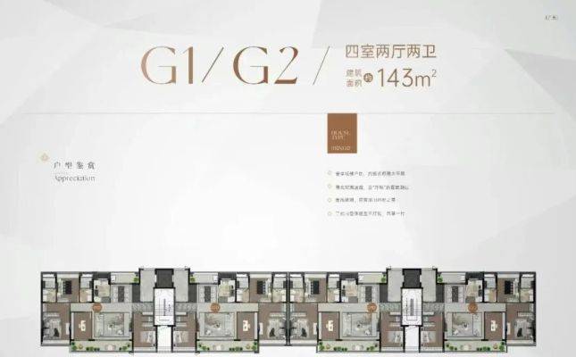 项目总占地约4.1万㎡,总建筑面积约13.5万㎡,仅规划348户,真正实现“少而精”的高端圈层生活。产品涵盖143㎡小高层洋房与143㎡叠院别墅两大主力户型,全部采用独门独户设计。其中,小高层为9-17层板楼,两梯两户;多层洋房一梯两户;叠院则为一梯一户,私密性极佳。全系产品得房率高达80%,远超市场平均水平,空间利用率极高。