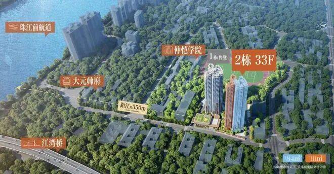 项目与地铁站不算近,最近的2号线市二宫站距离约1.2公里,需要接驳公交或者电鸡。但得益于项目位置足够核心,离中大纺织城、珠城、越秀等地都很近,约15-20分钟左右车程即能到达。