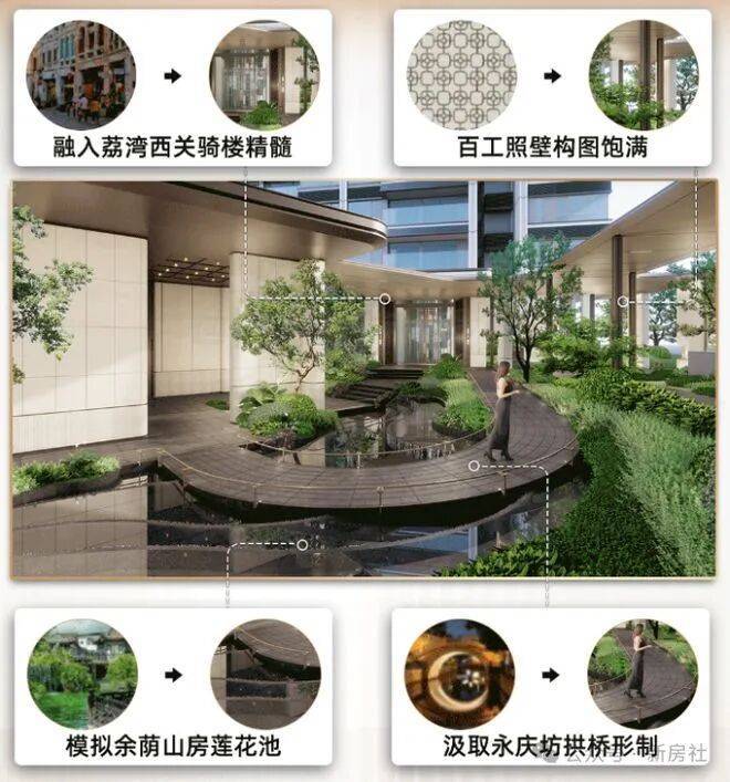 小区配套:地块本身配建也不多,仅有社区居委会、社区议事厅、党群服务站等三处公建,总建面才600平。汲取岭南名园的灵感,在园林融入前庭后院、园中有园的造景技法,为业主带来移步换景的精神享受。