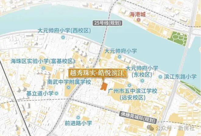 地块不远处就有海印南苑幼儿园、名都幼儿园等;小学方面,就有大元帅府小学、滨江东路小学等学校,在海珠有不错口碑。初中则对应五中滨江学校和南武中学等强校。