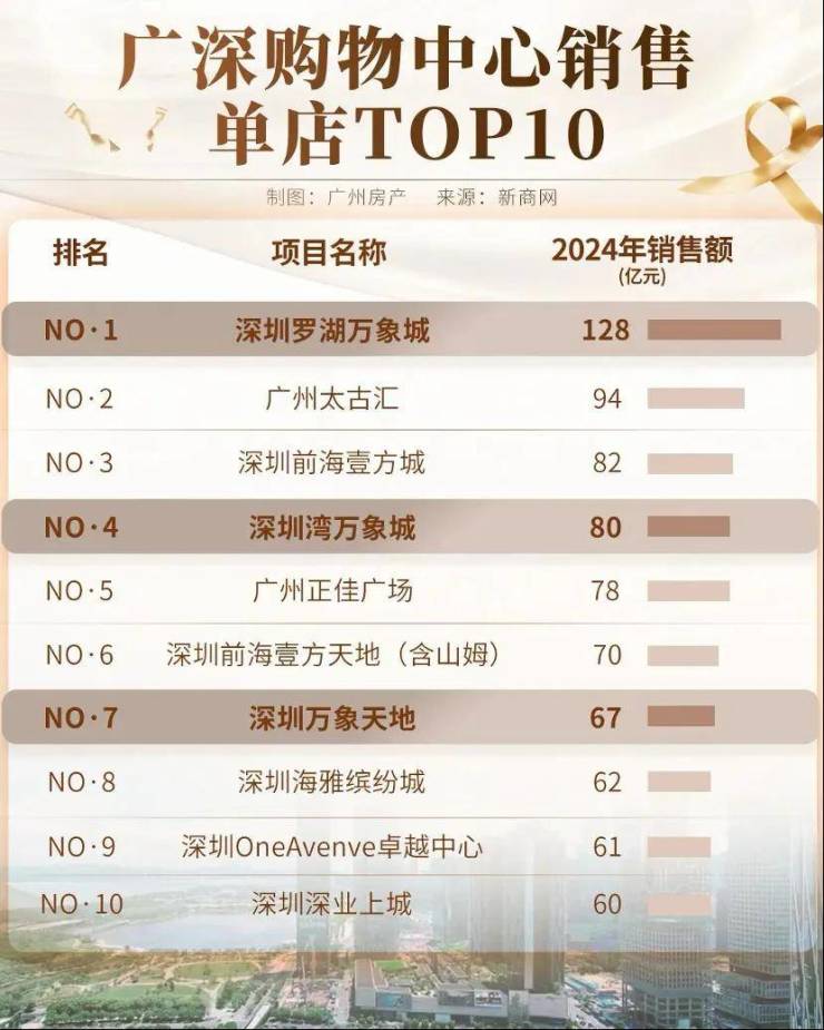 2024年广深商场销售额,前五里面万象城占了2座,深圳罗湖万象城更是华南第一。建面约19万㎡的白鹅潭万象城将极大提升城市商业格局,是4条地铁交汇的TOD,2万方的滨水公园也由华润运营。