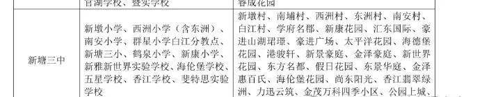 对口的小学—鹤泉小学,鹤泉小学是公办学位,省一级教学资格,距离楼盘1.8公里,但因为生源不够纯粹,招生范围较广,所以平均分数线排不到新塘前三,对口的中学是新塘三中,距离楼盘2.5公里