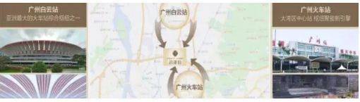 交通是越秀君越府的核心竞争力之一。项目3公里范围内汇聚广州火车站与广州白云站两大国家级铁路枢纽,构成强大的双TOD格局。广州火车站作为华南地区历史最悠久的铁路客运站,已全面升级为集高铁、城际、地铁于一体的综合交通枢纽;而广州白云站则是亚洲最大的铁路枢纽之一,未来将承担大量普速与高铁列车始发终到功能。
