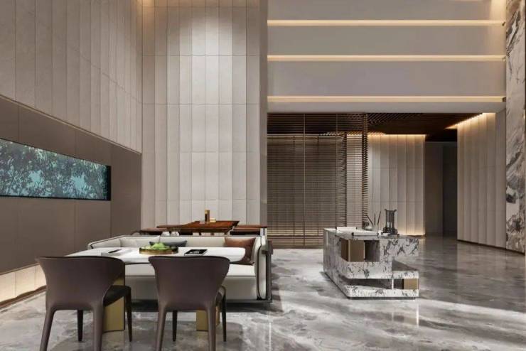 7米挑高大堂,豪宅标配公区全石材