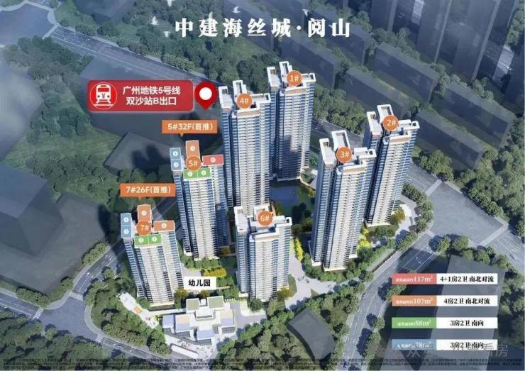 在售阅山组团出家门步行约40步即达地铁5号线双沙站B口, 一线可达珠江新城贯穿广州三大主轴。