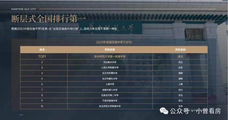 根据过往《中国百强中学》名单,在“全国百强高中排行榜”上,连续六年全国不落第一神坛。