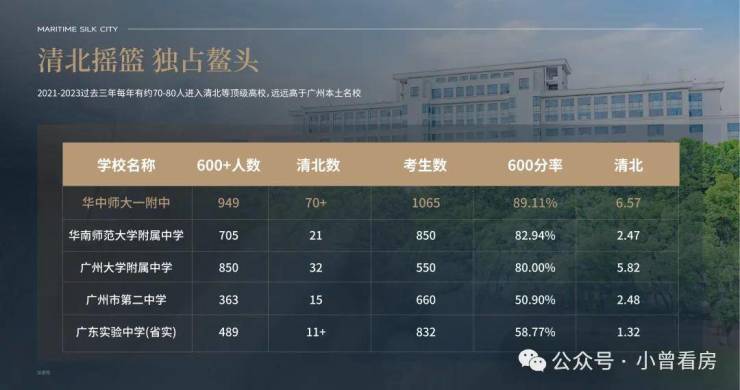 2021-2023过去三年每年有约70-80人进入清北等顶级高校,远远高于广州本土名校。