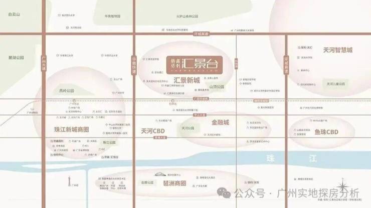 项目位于汇景新城板块的东北区,龙熹山的正北面,科韵路西侧,尊享汇景新城优越地理位置和二十年国际精英社区成熟配套,广州首个恒适系统科技健康豪宅。