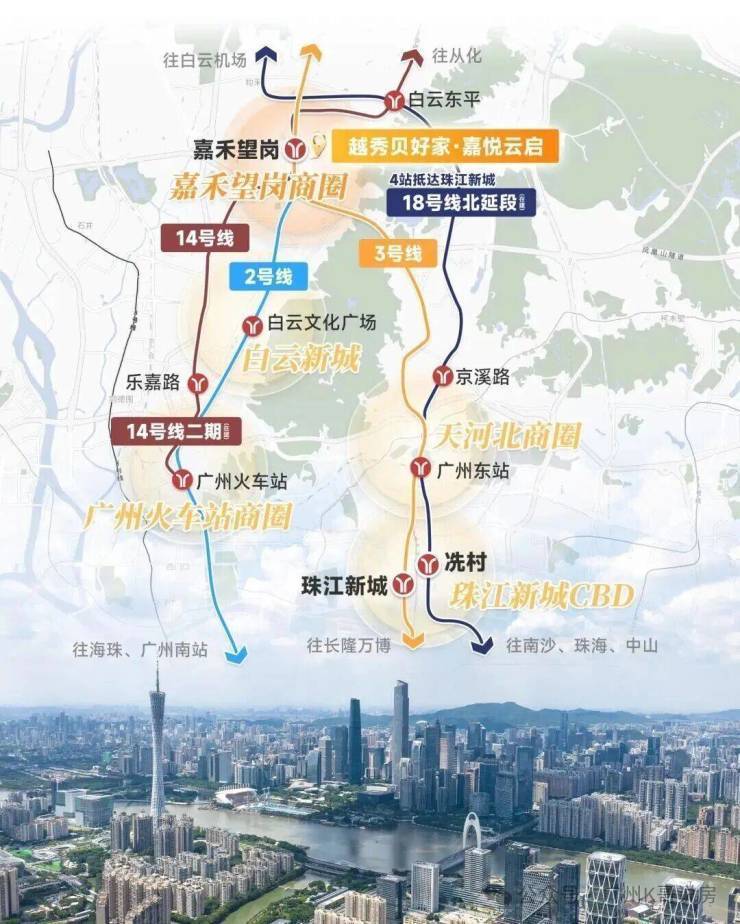 其中,3号线到机场、珠城、天河北,2号线到白云新城、公园前,都是核心产业区,且是直达,半小时通勤圈。