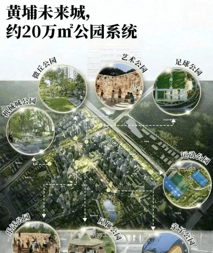 黄埔遍地旧改,但黄埔未来城却是招拍挂出让,200万㎡产城融合项目,0回迁。这点很有意思,广州不缺造城的样本,但往往有居无产变“睡城”。
