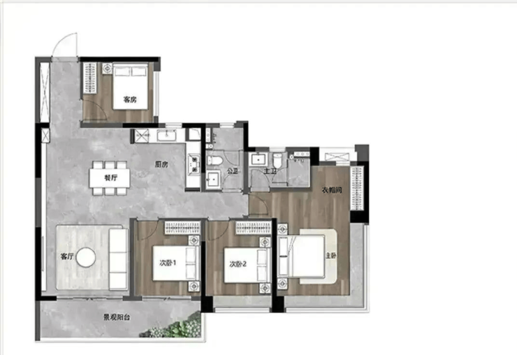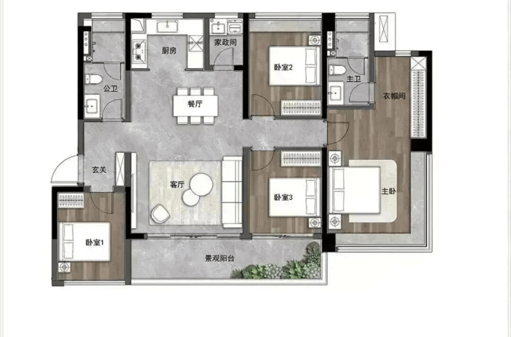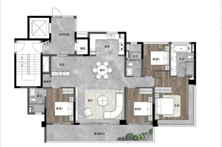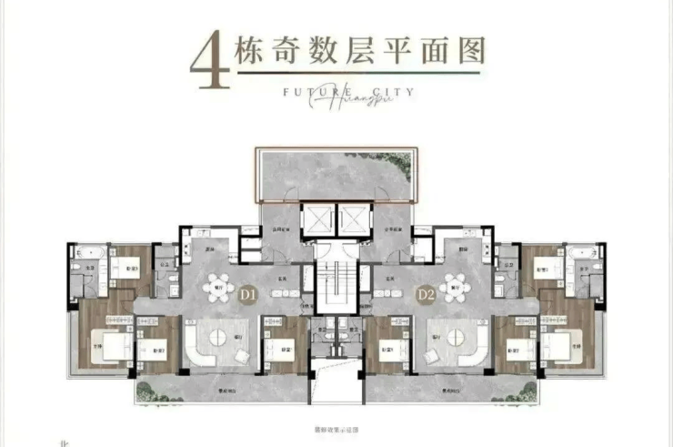 背后的精髓更在于,以“10%不计容公共空间”,创造主城平层住宅前所未有的“南北双庭院体系”。