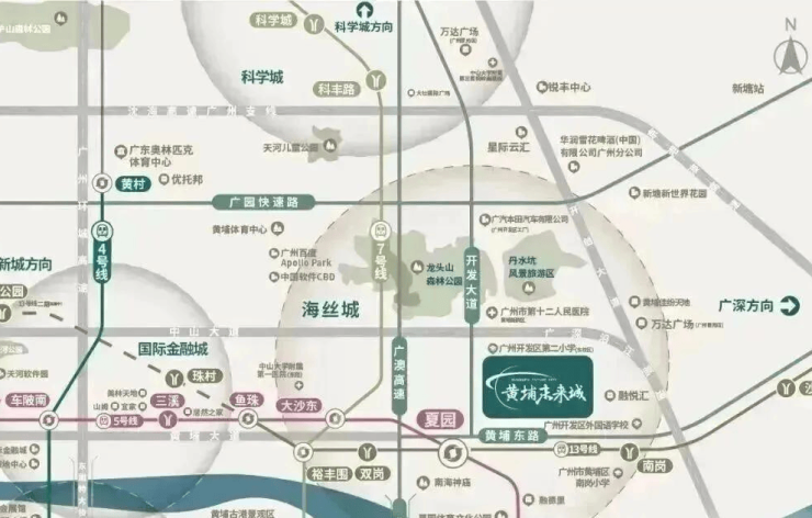 项目在夏园站附近,老黄埔只有4个地铁站双线交汇,夏园是其中之一,这也让黄埔未来城有了直通核心的便利。