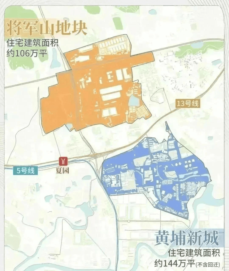 作为一个能叫“城”的楼盘,最显著的特点就是:大,将军山地块体量达到106万平,接近3/4个黄埔新城,达到1平方公里,规模相当于约3个猎德村(约31万㎡)旧改。