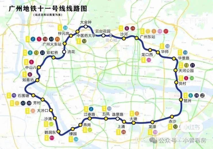 11号线是广州首条市区大环线,串联广州中心五区,与广州现有及未来的所有地铁实现换乘,被称为“换乘之王”(目前工程进度已达到97%,今年底就会通车)虹吸全广州的优质资源