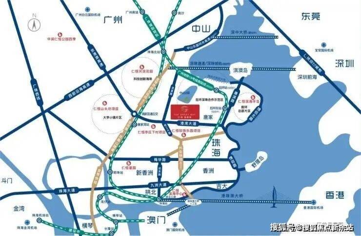项目拥1站(珠海北站)、3轨(广珠城轨、深珠城轨、广州地铁18号线)、3桥(深珠通道、深中通道、港珠澳大桥)、2快线(兴业快线、金琴快线),湾区超级交通枢纽中心,约30分钟达前海,约1小时达白云机场。
