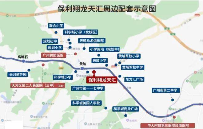 保利翔龙天汇位于广州市黄埔区黄陂片区,地处科学城与天河智慧城两大核心区域的交汇处。项目占地面积约为67万平方米,是一个集住宅、商业、教育、医疗等多功能于一体的大型综合社区。凭借其优越的地理位置和丰富的配套设施,保利翔龙天汇不仅满足了自住需求,也为投资者提供了良好的增值潜力。