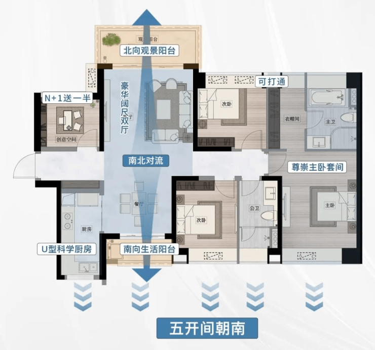 南北双阳台 · 5开间朝南 · 高赠送 · 超大主套 · 百变空间 · 大厨房