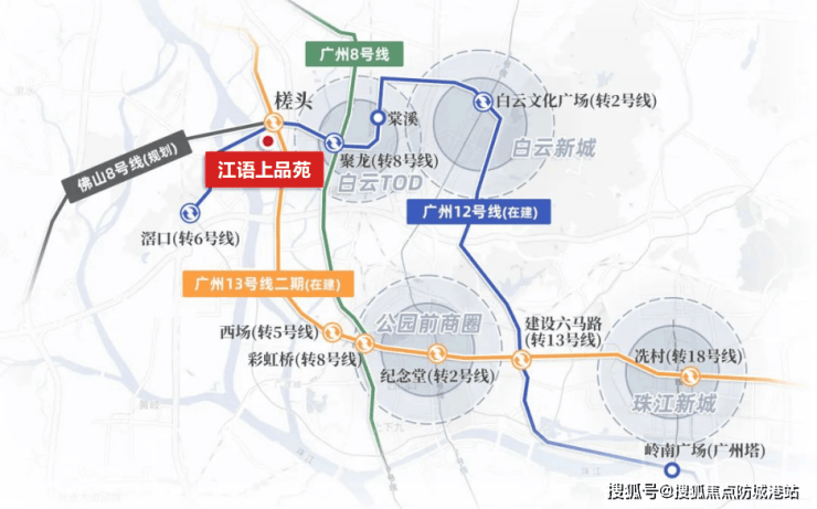 江语上品苑位于槎头地铁站上盖,是广州12号线(2024年通车)、13号线(2024年通车)及佛山8号线(规划中)三轨交汇之地,通过TOD开发模式,无缝直达广州核心区,极大地提升了交通便利性。轨道交通不仅为业主日常出行提供了便捷,更激荡着区域强劲的发展活力。在轨道交通的助力下,广州西岸正逐步展开充满活力的发展画卷,江语上品苑的业主将尽享交通与区域发展带来的双重利好。