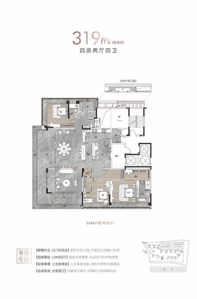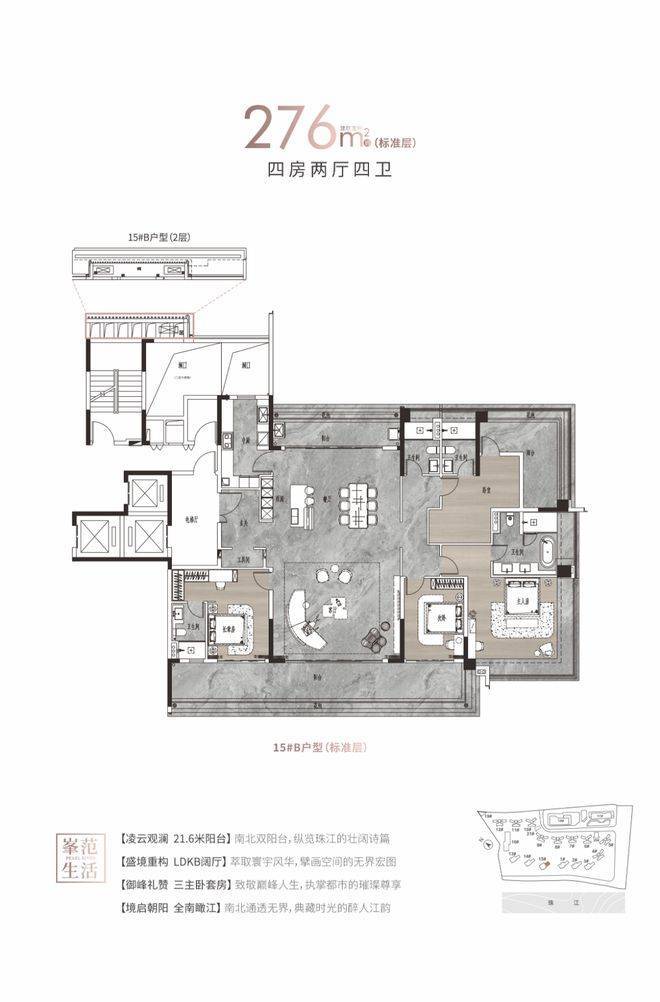 建面约214-319㎡低密大平层:全盘仅96席,24米超长观江阳台、尊梯入户、四开间朝南,重新定义白云江景奢宅标准