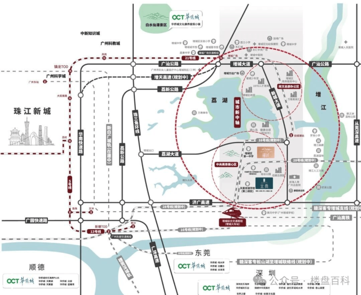 荔湖新城位于增城中部,范围北至广州增城万达广场,东至增江,南至塘头水库,核心区面积达65平方公里,依照规划,其将成为增城城市空间向南拓展的重要引擎,是未来增城的城市核心区。
