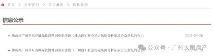 广州地铁官网发布了佛穗莞城际广州段、佛山段的社会稳定风险分析征求公众意见的公示。