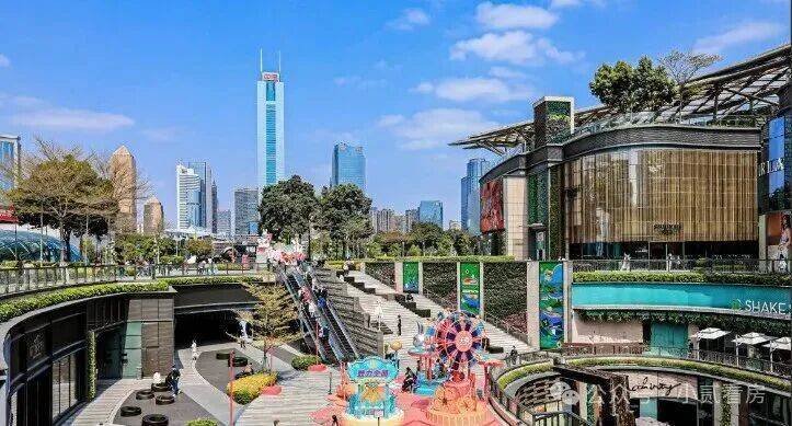 小区有 下沉式广场、 退台空间、 城市休闲草坪、 儿童活动广场、 登山体验步道等,创造绿色生态、时尚品味的商业空间。抬头蓝天入眼,低头绿意相伴,如此新奇的购物体验,放眼天河,前所未见。