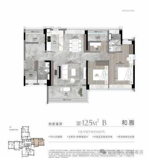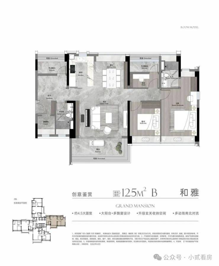 例如面宽,整个户型拉大了南向开间面,南北对流的同时,实现4.5面的南向面宽。