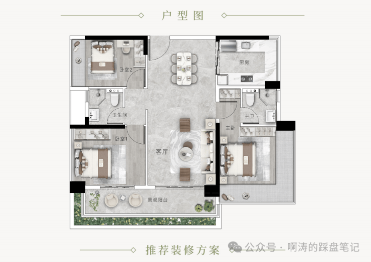 •休闲娱乐:【观璟】以四季植物主题打造【四大专属花园】,满足家庭多元需求;楼下架空层打造全龄段休闲活动空间,为不同客群定制化生活方式。