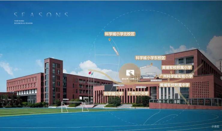 周边学校丰富,资质也不错。项目约1公里,可步行的范围内,小学有5所(含已规划的一所),包括科学城小学、黄陂小学、黄埔军校小学、联和小学;中学2所,为117中学和黄埔军校中学。
