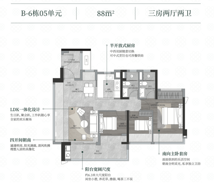 约82-89㎡带主套三房|约106-126㎡奢阔四房