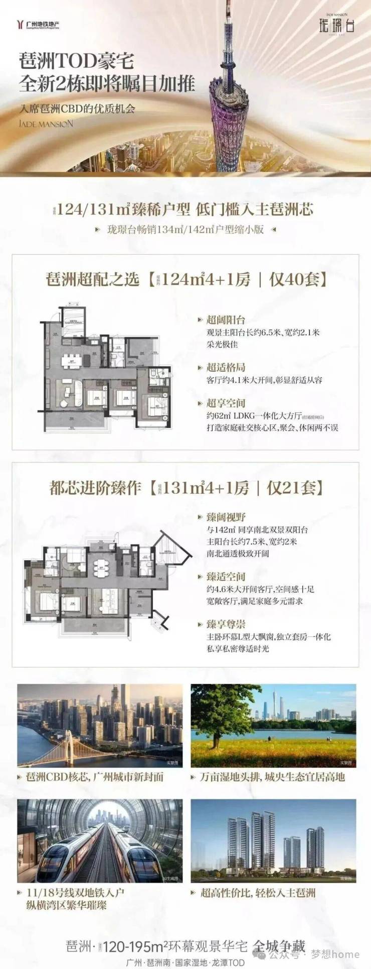 广州地铁地产·珑璟台推出最后一栋2#,主打建面约123㎡、131㎡4+1房。