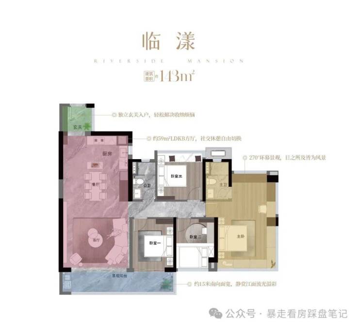 【户型】约130/143/180㎡全南四房,使用率约100%
