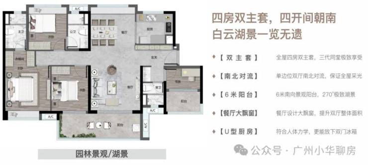 【140㎡四房二厅二卫】四房双主套,6米大阳台,望湖极致景观面!!