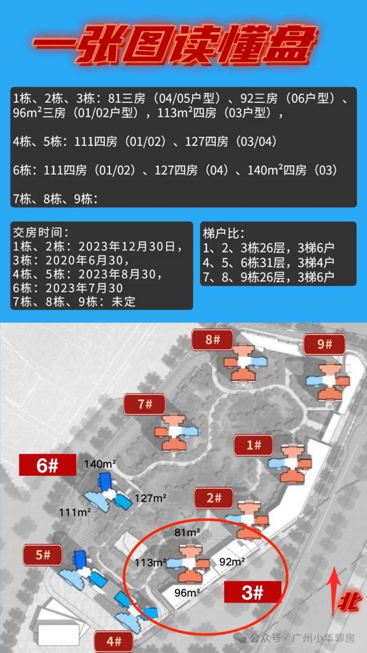 1栋、2栋、3栋: 在售 81三房(04/05户型)、92三房(06户型)、96m²三房(01/02户型),113m²四房(03户型),