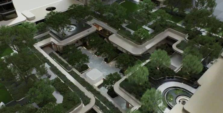 第一:隔绝城市喧嚣。11米抬高的“超级底盘”,把车库、商业街区藏在下方,哪怕是项目“一楼”,