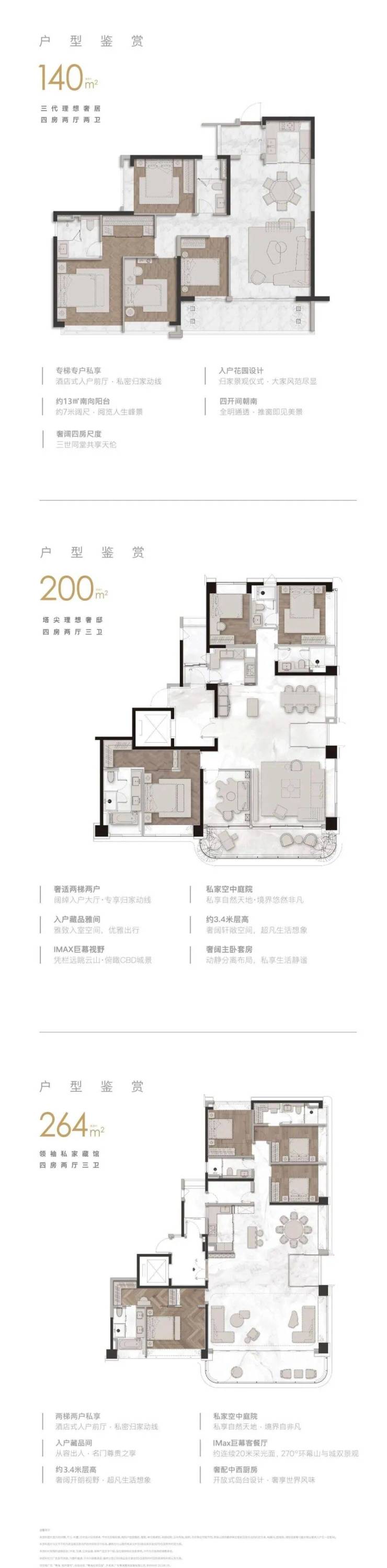 在售户型:住宅:140-264㎡ 公寓:50-148㎡