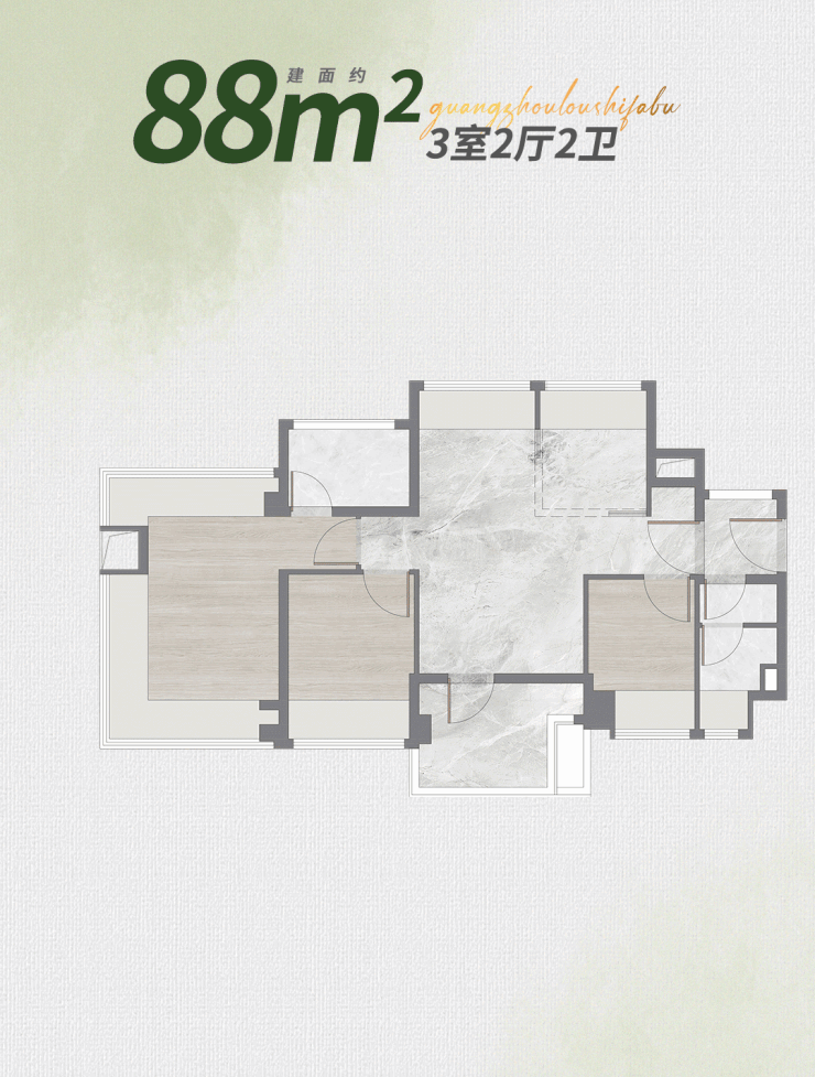 在售产品:塔楼(23F)建面约75-88㎡三房,板楼(17F)建面约125-128四房