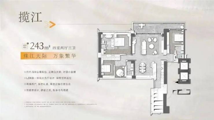东地块6栋(52层)是243㎡四室两厅三卫