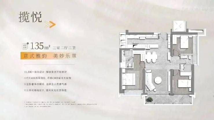 8栋(55层)则有135㎡三室两厅两卫和185㎡四室两厅三卫。