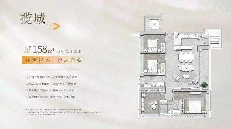 住宅方面,西地块1栋(42层)在售243㎡四室两厅三卫,2梯2户设计;