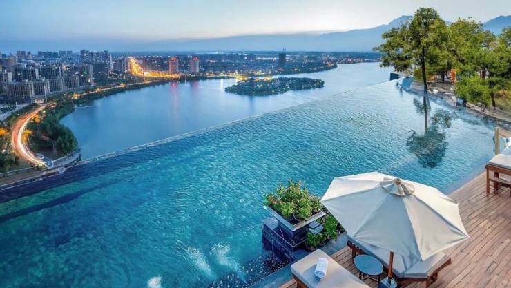 ②小区园林能形成天然退台式格局,实现引江入园、园中有江。