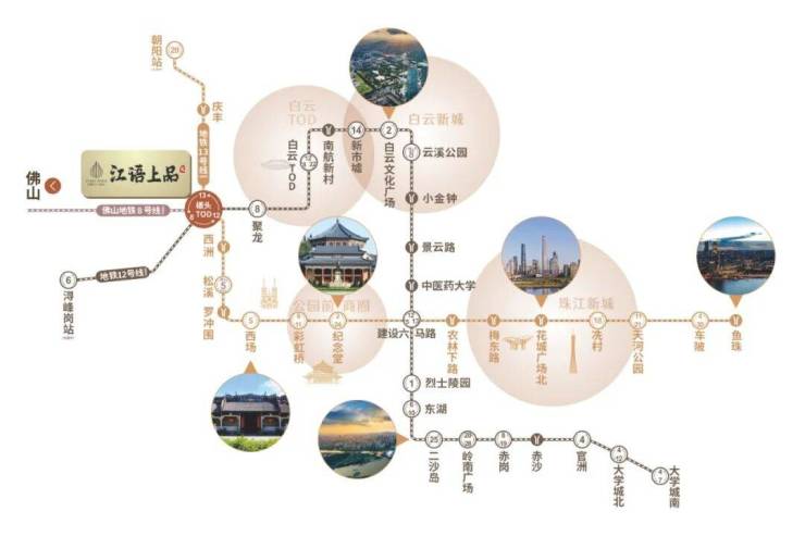 项目开发商就是广州地铁集团,因此小区近邻地铁是百分百的,项目距离地铁TOD槎头站600米;广州地铁12/13号线及佛山8号线交汇换乘站。由于该盘属于私密性较高的改善型江景豪宅,因此与地铁距离没有广州地铁集团其他在售项目那么近;但所属交通枢纽TOD站点交通非常便利!