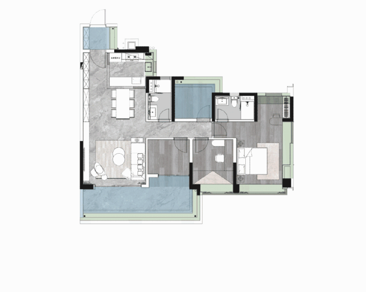 🔘8.3米宽的阳台和次卧相连,形成跑道式阳台