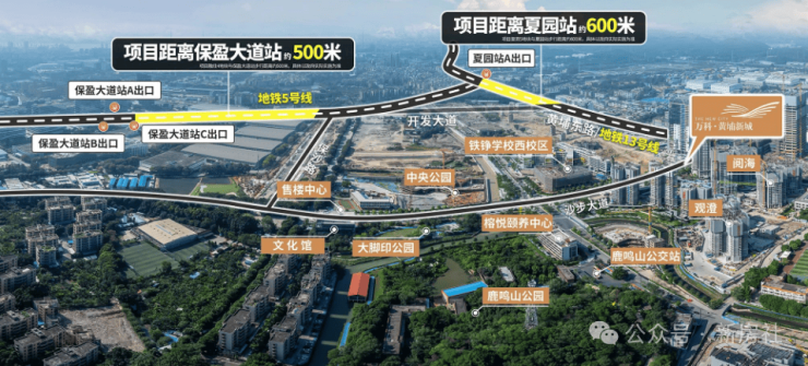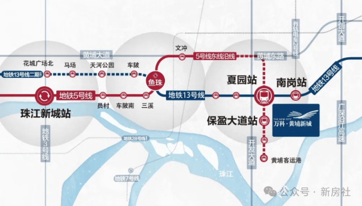 近5号线双地铁口,直达珠江新城:2地铁(5/13号线),5号线保盈大道、夏园站(已通车)无需换乘,直达珠江新城CBD;通过13号线夏园站,4站直达鱼珠CBD,5站到天河,二期开通后不换乘直达珠江新城。