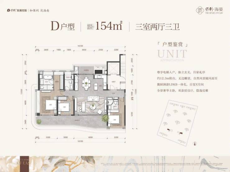 约3.3米的层高,约13㎡独立电梯厅,约8.9米巨幕景观阳台,是物理尺度的绝对超越。