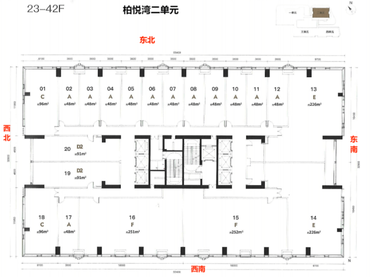 楼层高:1单元5-40层-2单4-43层元商办43层,3-4单元4-48层