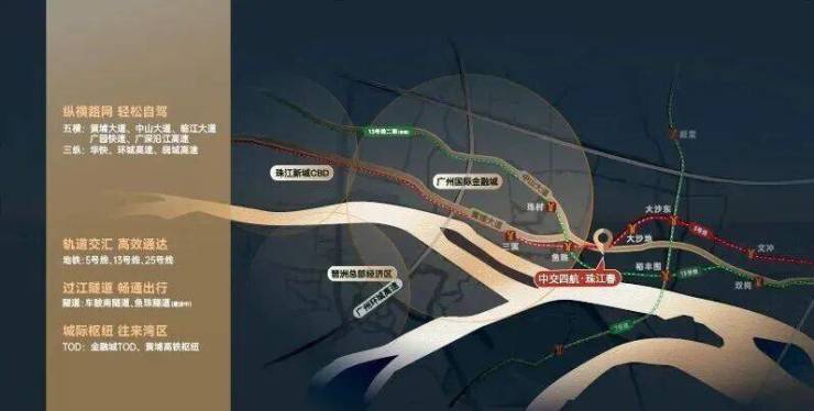 5号线+13号线二期两条高含金量的地铁以及2条超级城市主干道中山大道+黄埔大道,一线直连珠江新城、金融城。