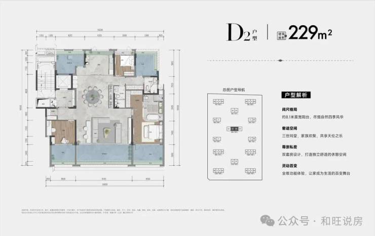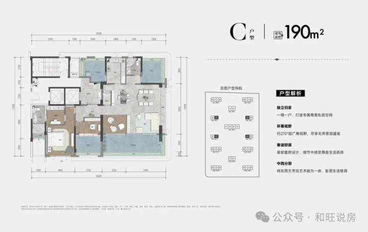 建面约130-229㎡湾芯环幕平层,纯板楼格局。约87米超宽楼距,约3.3米层高,270°巨幕视野,空间百变,定义通透与奢阔。