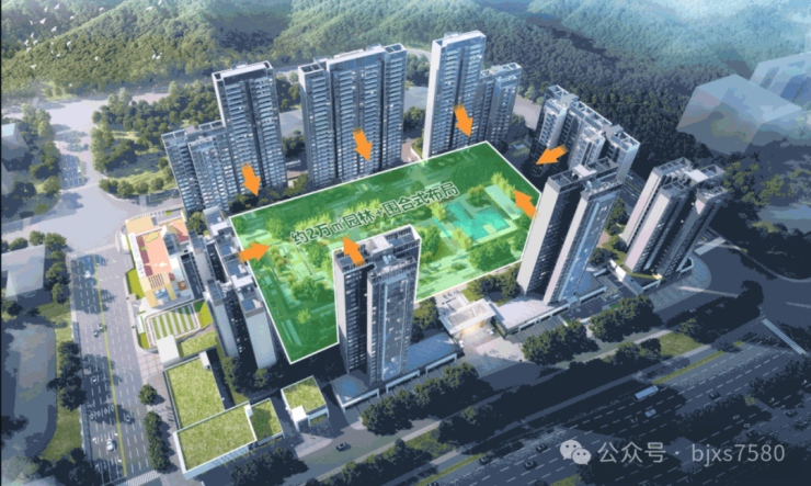 内部规划约600m夜光跑道、约800㎡度假休闲泳池,还有下沉式阳光草坪等多元场景。