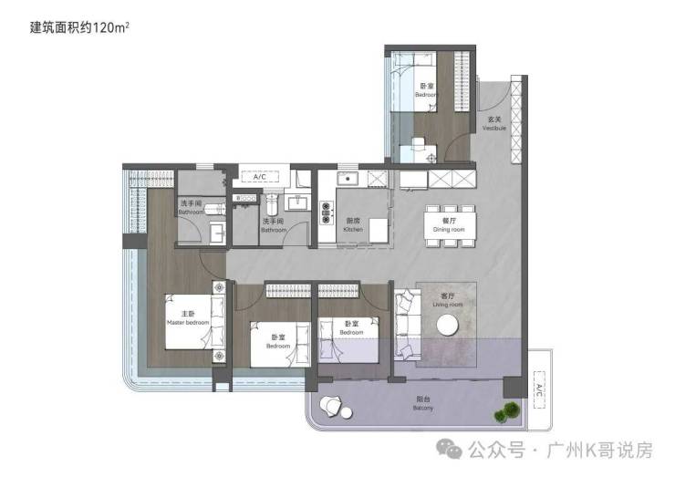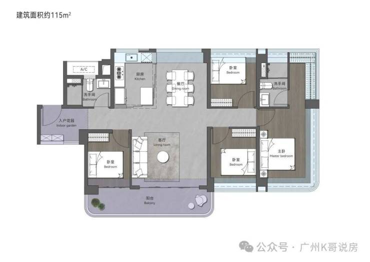 115㎡创意四房两卫,搭配大面积入户花园,归家即享井然有序的从容